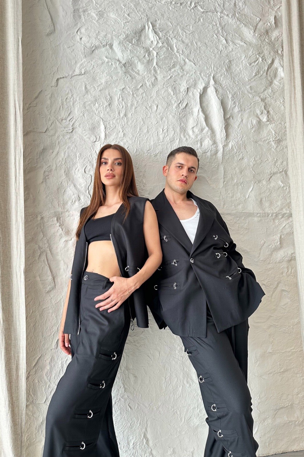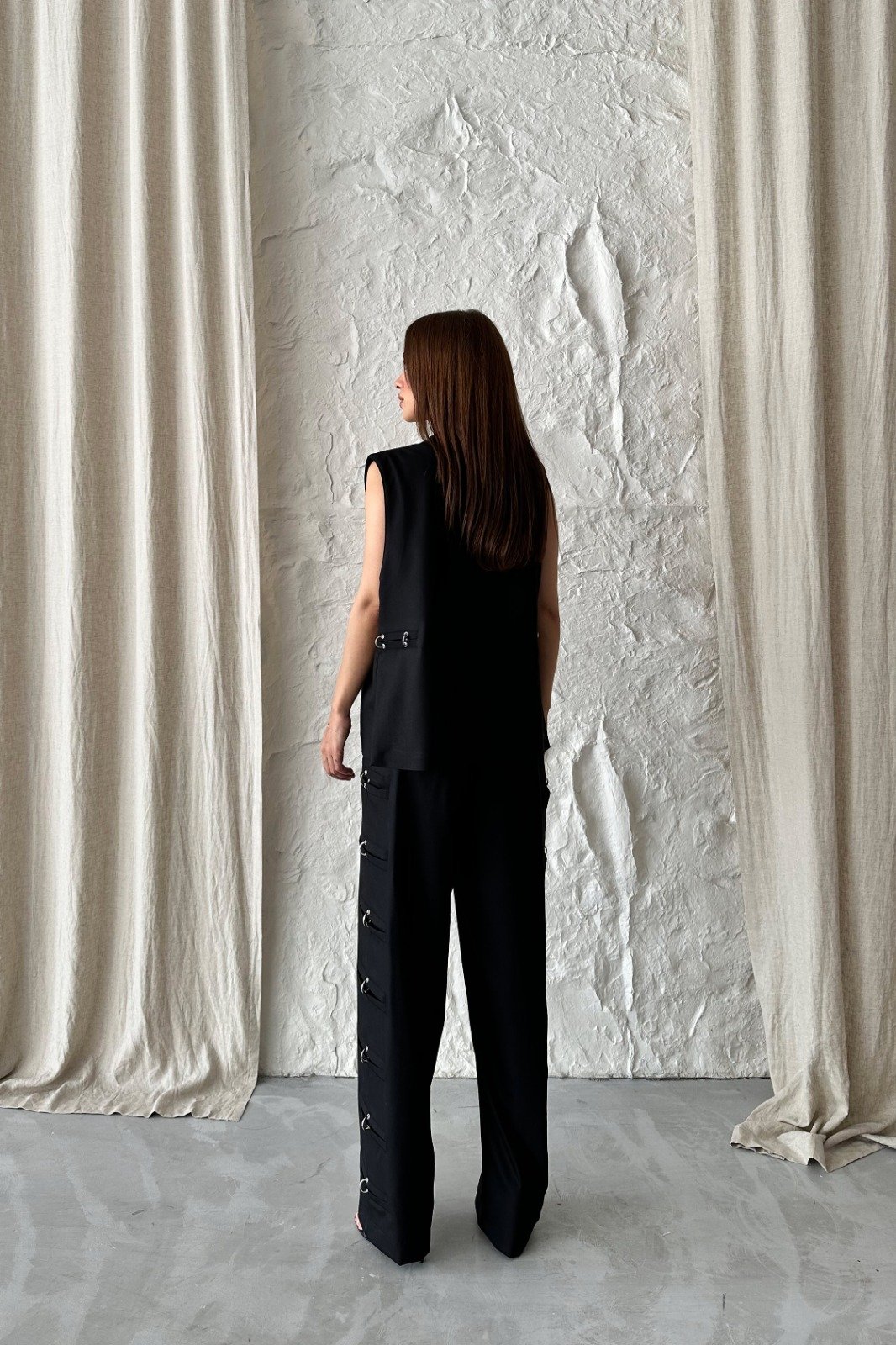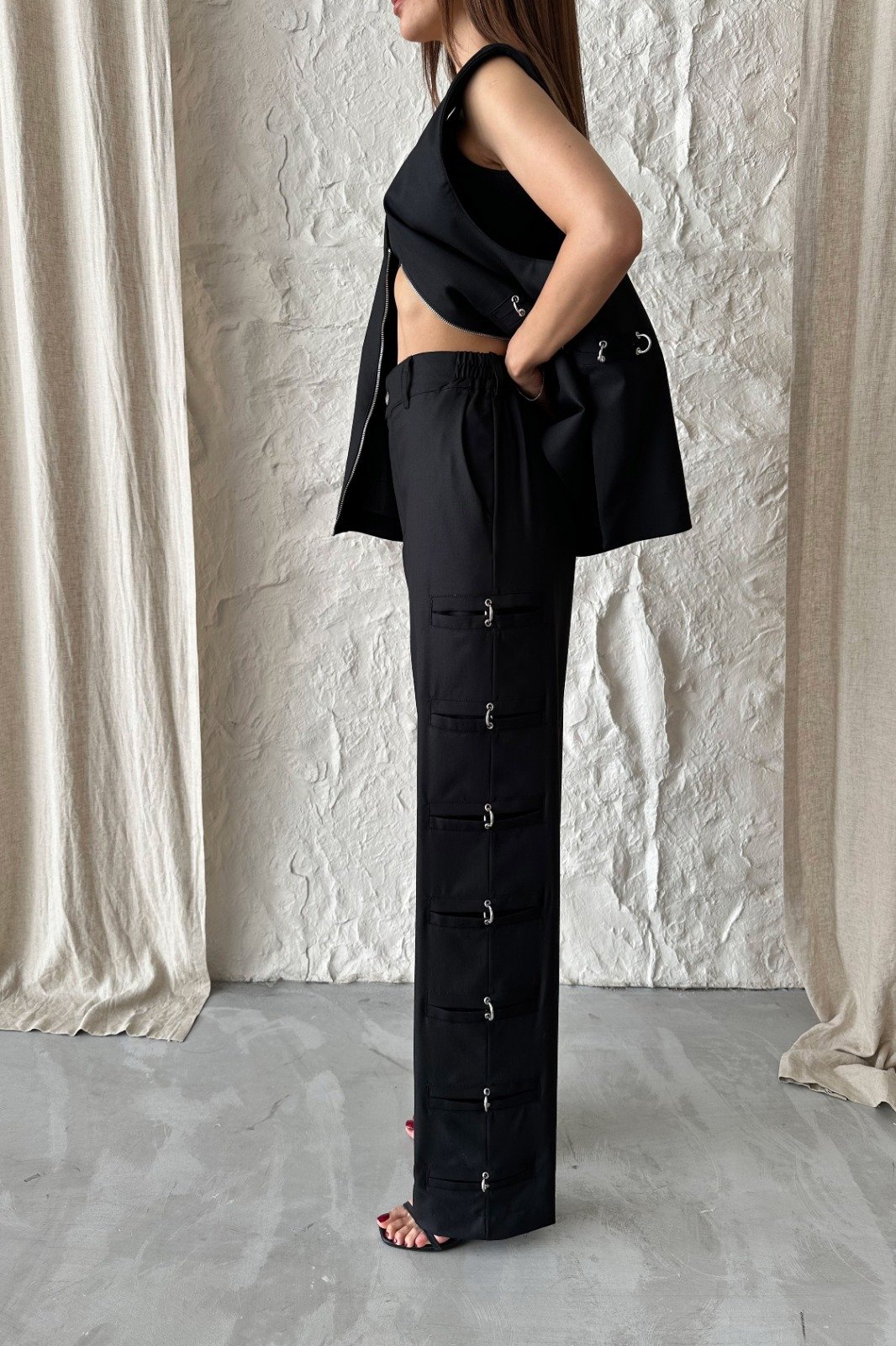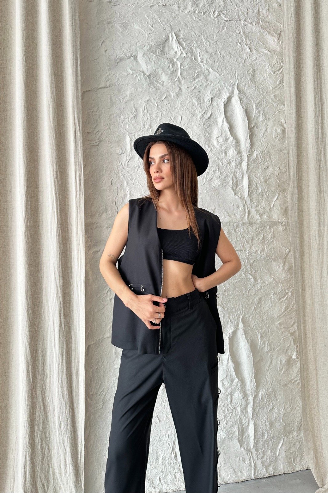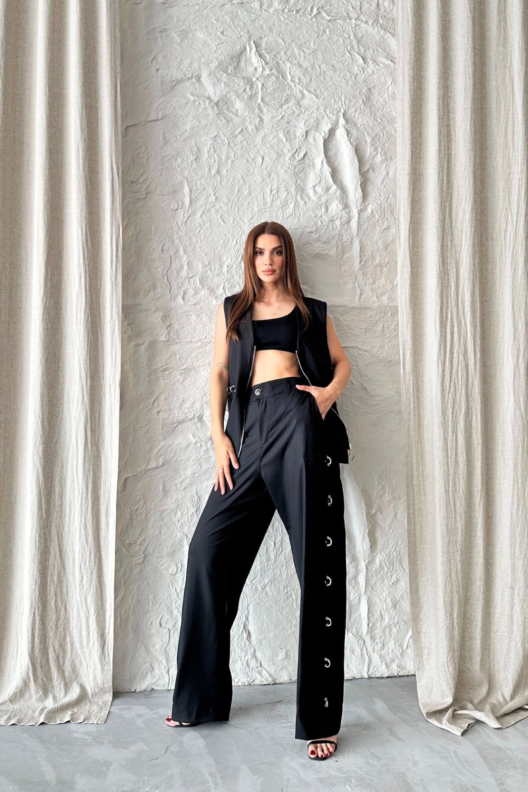 Pantolon, siyahın zamansız çekiciliği ile kişiyi özel kılmaktadır.