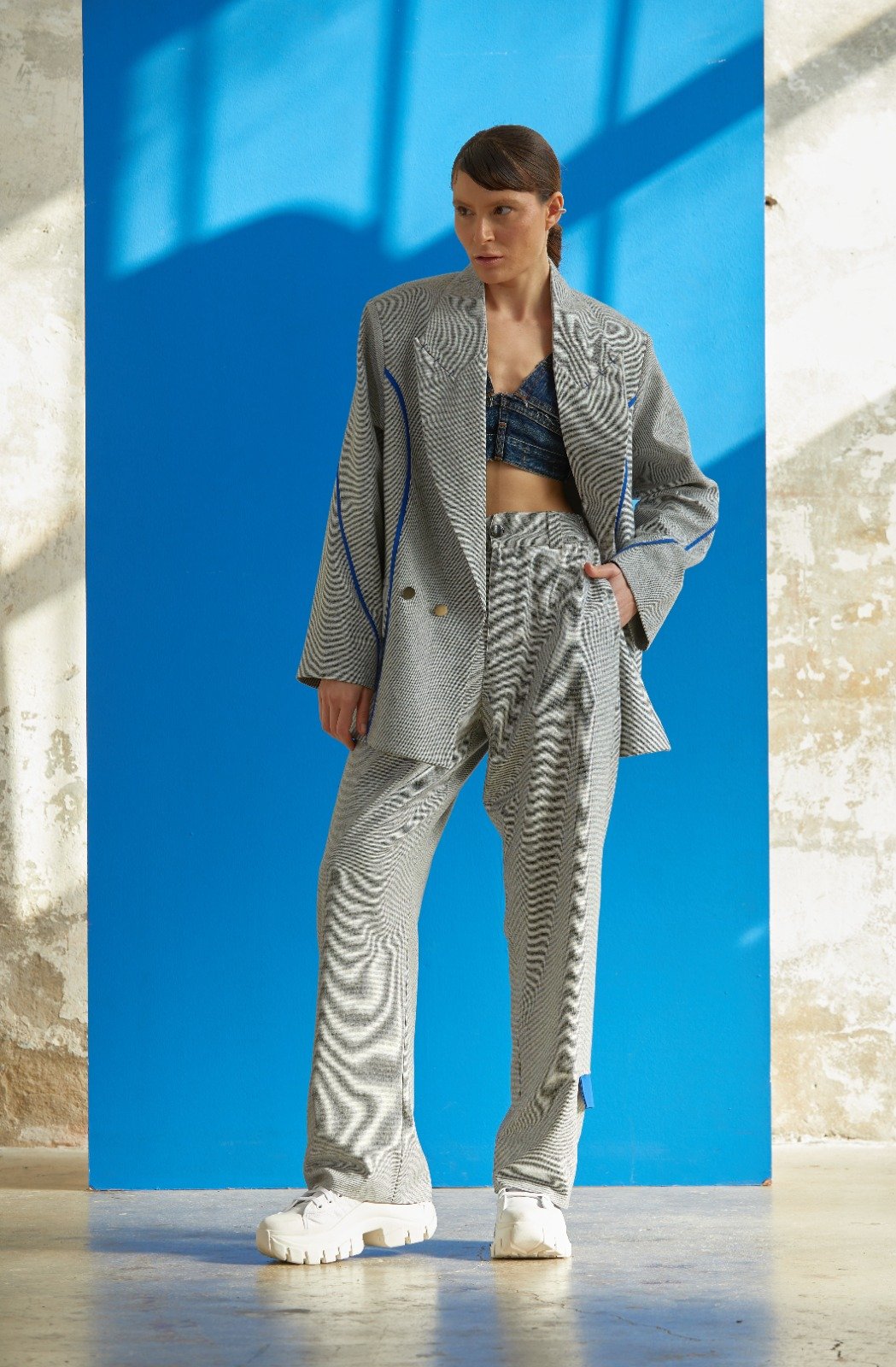 Takım, ince şerit detayları ile öne çıkmaktadır.